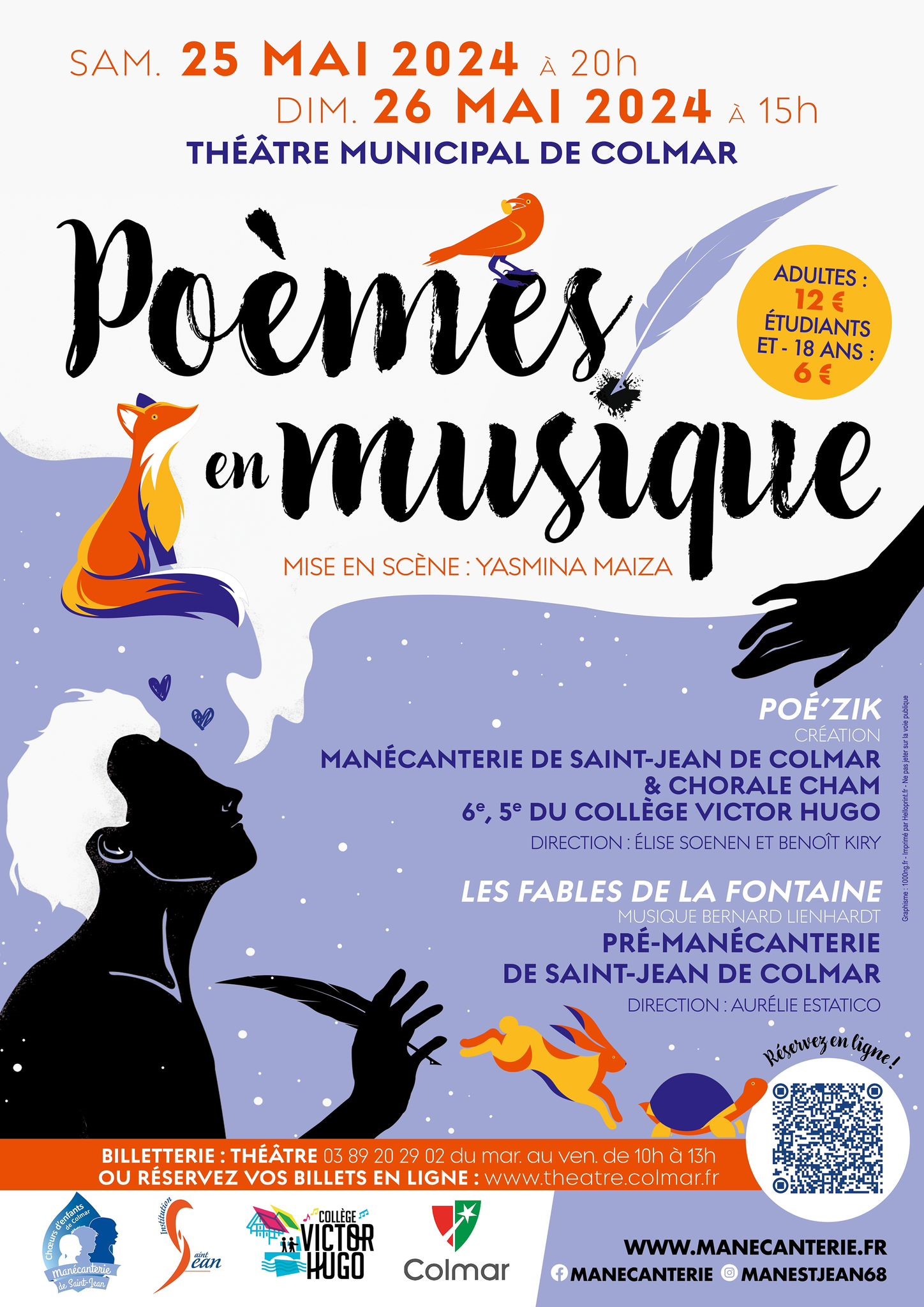 La Manécanterie sera accompagnée des 6e et 5e de la classe CHAM du collège Victor HUGO. Les jeunes, sous la direction d’Elise SOENEN et Benoît KIRY, mettront en musique les textes d’illustres auteurs français longuement étudiés sur les bancs de l’école.